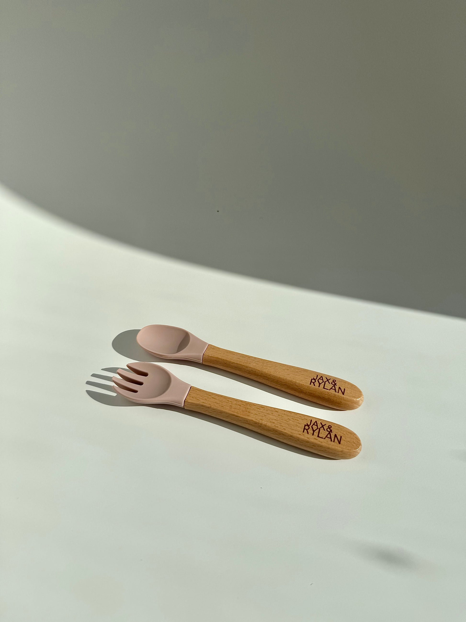 The Rylan Wooden Fork and Spoon set is a great option for a baby’s first feeding set! The Silicone is BPA free, toxin free, lead free, plastic free, 100% Food grade silicone. The wood is high quality durable choice but requires hand washing for care. We do not recommend dishwasher or microwave for long life of the product.